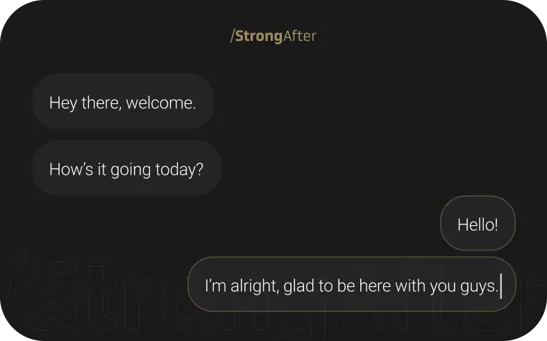 StrongAfter’s proprietary AI assistant, designed to safely and privately connect users with helpful information and resources, available anytime support is needed.